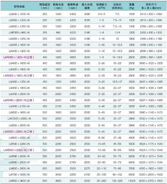 三相臥螺離心機(jī)參數(shù)